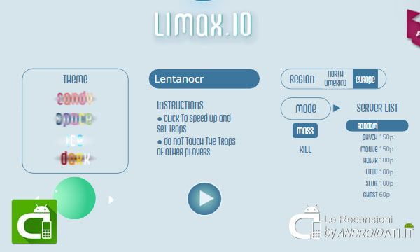 I meccanismi di utilizzo di Limax.io, pensati prettamente da tastiera per laptop, PC e trasformabili, vi consentiranno di muovervi direttamente tramite il puntatore del mouse e di accelerare la spinta in modo quasi similare effettuando un clic (indifferentemente con tasto destro o sinistro) facilitando così la vostra corsa all’interno dell’arena di gioco dal look moderno e persino coinvolgente.